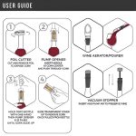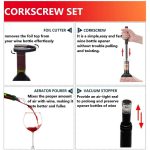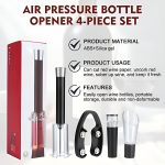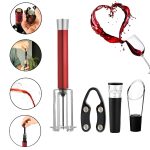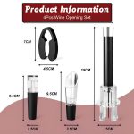 Dieses 4-in-1-Set enthält einen Luftdruck-Weinöffner, einen Folienschneider, einen Belüfter-Ausgießer und einen Vakuum-Stopfen für ein perfektes Weinerlebnis.