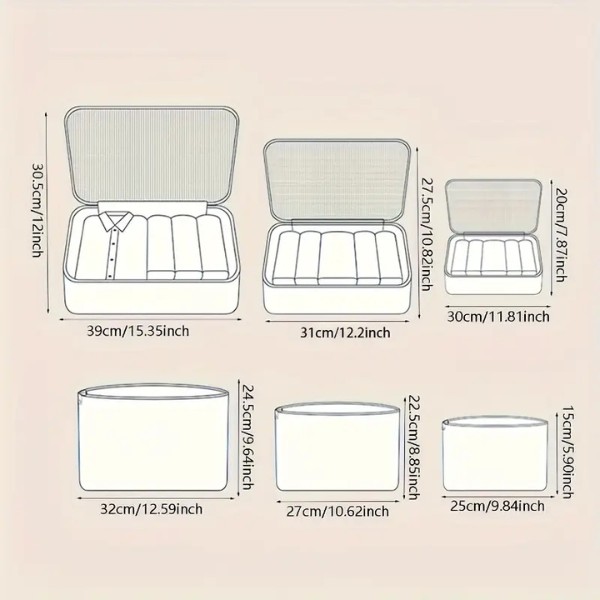 Vergessen Sie überfülltes Gepäck und verschwendeten Platz! Mit dem 6-Taschen-Set wird das Packen für Ihre nächste Reise einfach und stressfrei. Sie können Kleidung, Schuhe, Toilettenartikel und mehr packen. Halten Sie Ihre Kleidung unterwegs ordentlich und faltenfrei!