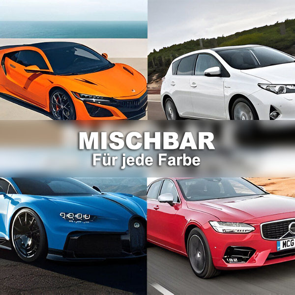 Mischbar für jede Autolackfarbe. Funktioniert auf verschiedene Oberflächen einschließlich Felgen, Chrom, Farbe, Metall, Kunststoff, Gummi, Leder, Motor und sogar Teppich.