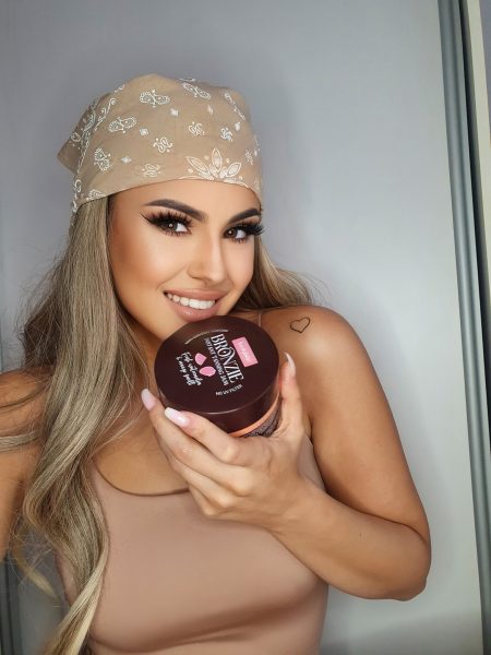 Angereichert mit organischer Shea- und Kakaobutter, Walnussöl für einen goldenen Schimmer, einer Mischung aus natürlichen Nährstoffen für die Haut und Karottenextrakt für eine tiefere Bräune, spendet Bronzie Ihrer Haut Feuchtigkeit und verleiht ihr ein glattes, weiches und hydratisiertes Gefühl.