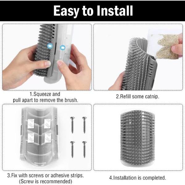 Katzen brauchen einige Zeit, um sich an diese Eck-Katzenbürsten zu gewöhnen, und du kannst ihr Interesse steigern, indem du eine Prise Katzenminze hinzufügst (nicht enthalten).