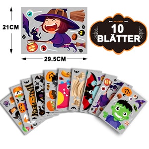 - Größe: Halloween Fensteraufkleber, bestehend aus 10 Aufklebern, je 21 x 29,5 cm