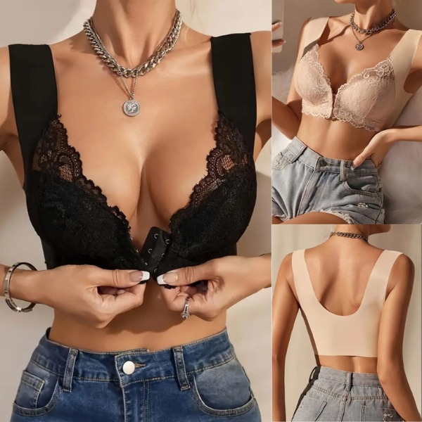 Hergestellt aus elastischem Stoff und weicher Spitze, passt sich der FRONTBRA Ihrer Körperform an, ohne einengend oder unbequem zu sein. Genießen Sie die perfekte Balance aus Halt und Komfort, selbst an hektischen Tagen.