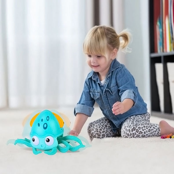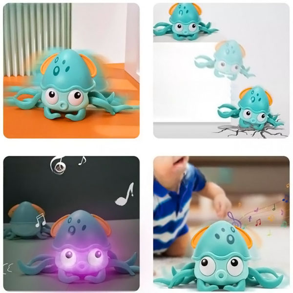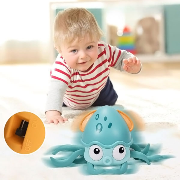 Dieser verspielte Oktopus krabbelt herum und regt Babys an, ihm zu folgen und ihre motorischen Fähigkeiten zu entwickeln.