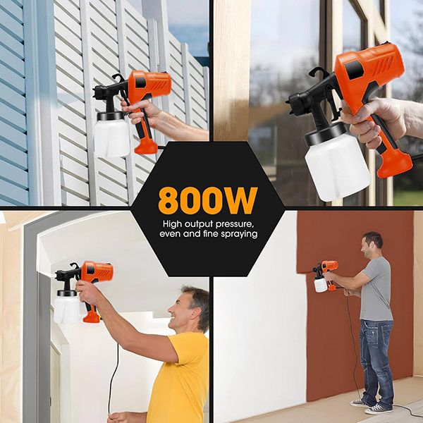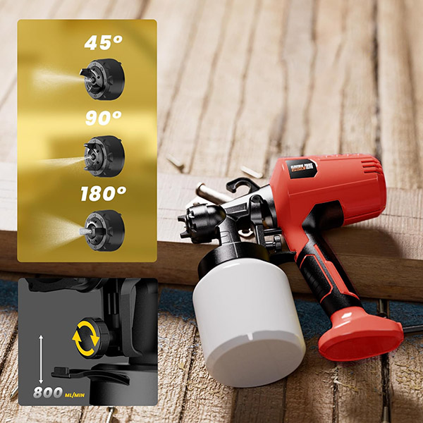 Tropfen und Verläufe sind der größte Frust beim Sprühen von Farbe. Die Anti-Tropf-Düse des PAINTJET hält den Fluss stabil, egal ob Sie sich schnell oder langsam bewegen, so dass es keine hässlichen Verläufe an der Wand gibt. Der 400 W Motor mit 32.000 U/min hält den Druck von einem vollen Tank bis zum letzten Tropfen konstant.
