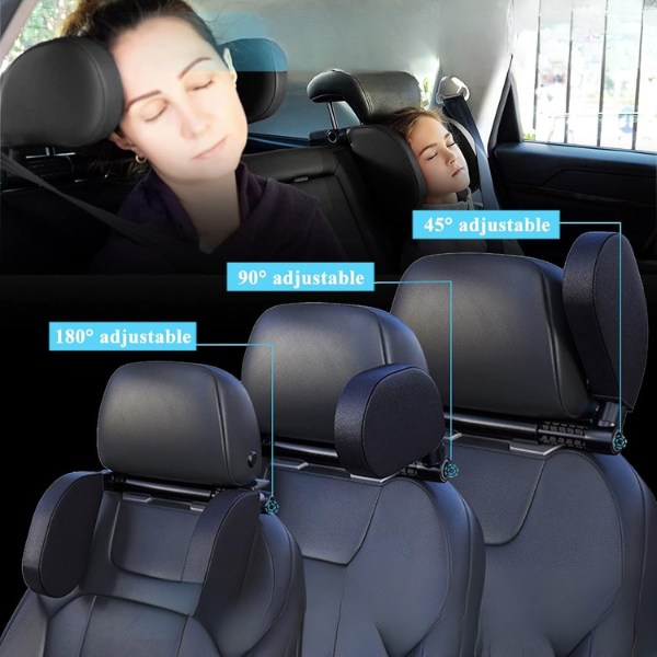 Egal, ob Sie groß oder klein sind, DRIVEREST bietet vollständige Anpassungsmöglichkeiten. Die Kopfstützen drehen sich um 180° und die verstellbaren Lochpositionen (7-16 cm) ermöglichen es Ihnen, die bequemste und persönlichste Position für Erwachsene und Kinder zu finden. Mit verstellbarem Stangenabstand passt es perfekt in jedes Auto- oder Fahrzeugmodell.