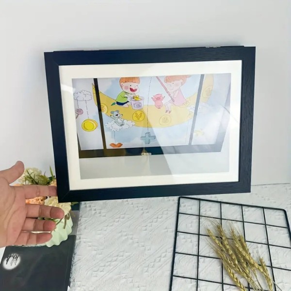 Präsentieren sie die kunstwerke, gemälde, familienfotos oder postkarten ihres kindes stolz an ihren wänden. Das moderne design von FRAMELET ermöglicht es ihnen, neue werke einfach zu drehen und auszustellen, damit ihre wände frisch und voller persönlichkeit bleiben.