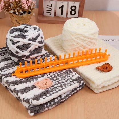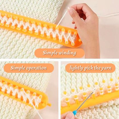- Das Paket enthält: 4x Strickhilfen in verschiedenen Größen, 1x Haken zum Abnehmen des fertigen Produkts, 2x Nadel, 1x Anleitung