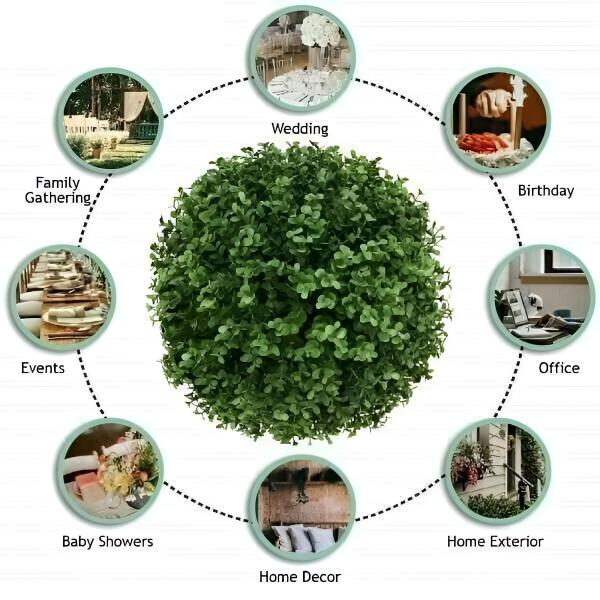 Die aus hochdichtem PE-Kunststoff gefertigten künstlichen Pflanzenbälle sind ebenso langlebig wie umweltfreundlich. Im Gegensatz zu echten Pflanzen sind sie resistent gegen UV-Strahlen und Wasser, das heißt, sie behalten ihre leuchtenden Farben und ihre Form, auch wenn sie den Elementen ausgesetzt sind. Ob heiße Sonne oder Regentage, diese Pflanzenbälle bleiben schön, ohne zu verblassen oder ihre Form zu verlieren.
