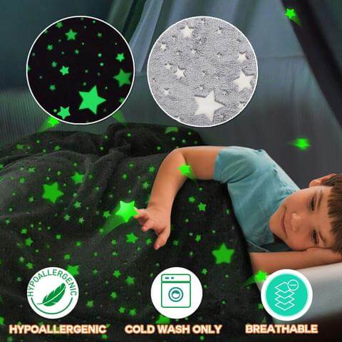 BLANKGLOW! Diese magische Decke aus lumineszierenden Materialien bringt Ihren Schlaf auf ein galaktisches Niveau! Die lumineszierenden Materialien geben nachts ein beruhigendes hellgrünes Leuchten ab!