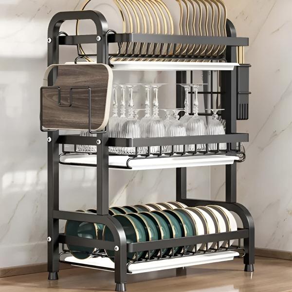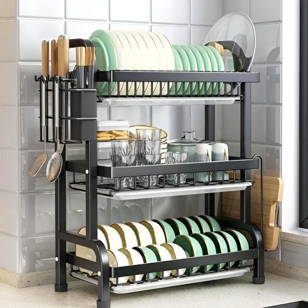 Maximiere den platz in deiner küche mit einem mehrstufigen system, das eine große menge an geschirr bei minimalem platzbedarf bewältigt.