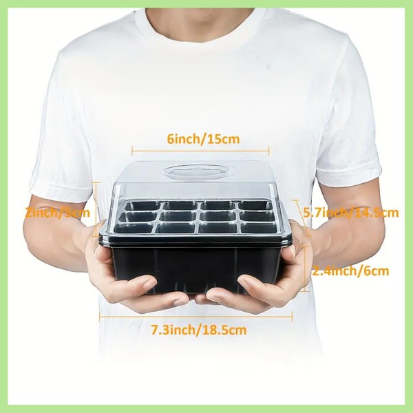 Jede Schale hat 12 Löcher und einen Deckel mit Belüftungsschalter. Jetzt können Sie die Luftfeuchtigkeitswerte kontrollieren und die beste Umgebung für Ihre Keimlinge sicherstellen. Ziehen Sie gesunde, gut belüftete Wurzeln für stärkere Pflanzen.