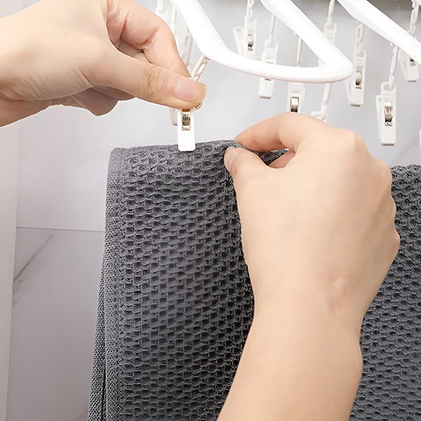 Die strategisch angeordneten Wäscheklammern sorgen für eine optimale Luftzirkulation, so dass die Wäsche schnell und gleichmäßig trocknet, ohne sich gegenseitig zu berühren.