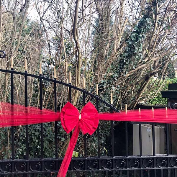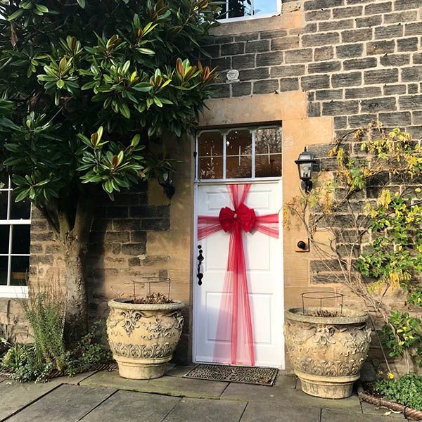 Schmücken Sie Ihre Tür mit unseren luxuriösen Schleifendekorationen. Mit einem 750 cm langen Band können Sie Ihrer Haustür ein schönes, festliches Aussehen verleihen. Ob zu Weihnachten, zur Hochzeit oder zur Babyparty, der RUBYBOW verschönert jede Feier.